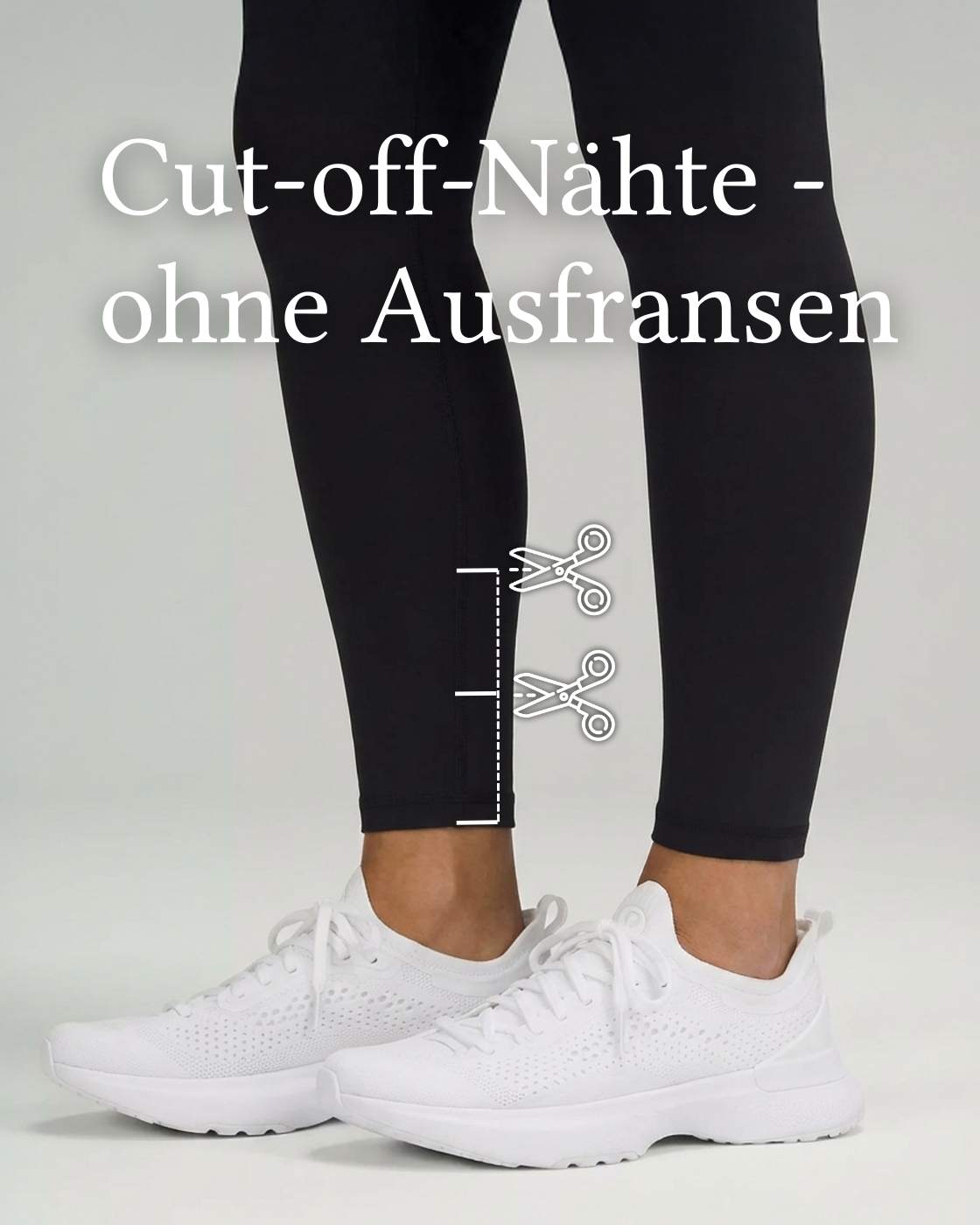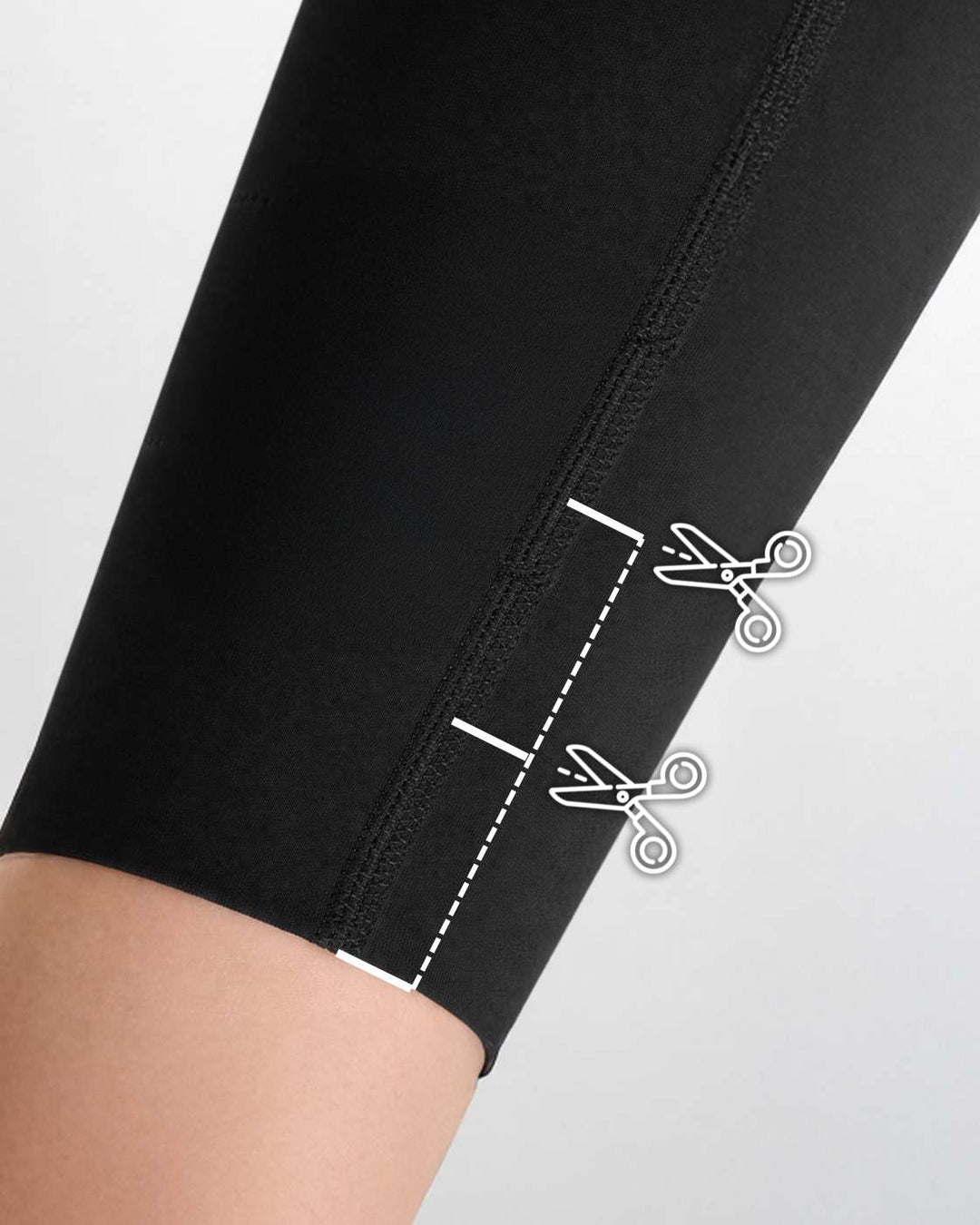 Dank speziell gesetzter Cut-off-Nähte lässt sich die Leggings an zwei markierten Stellen ganz einfach auf deine Beinlänge zuschneiden – ohne Ausfransen, für eine perfekte Passform.